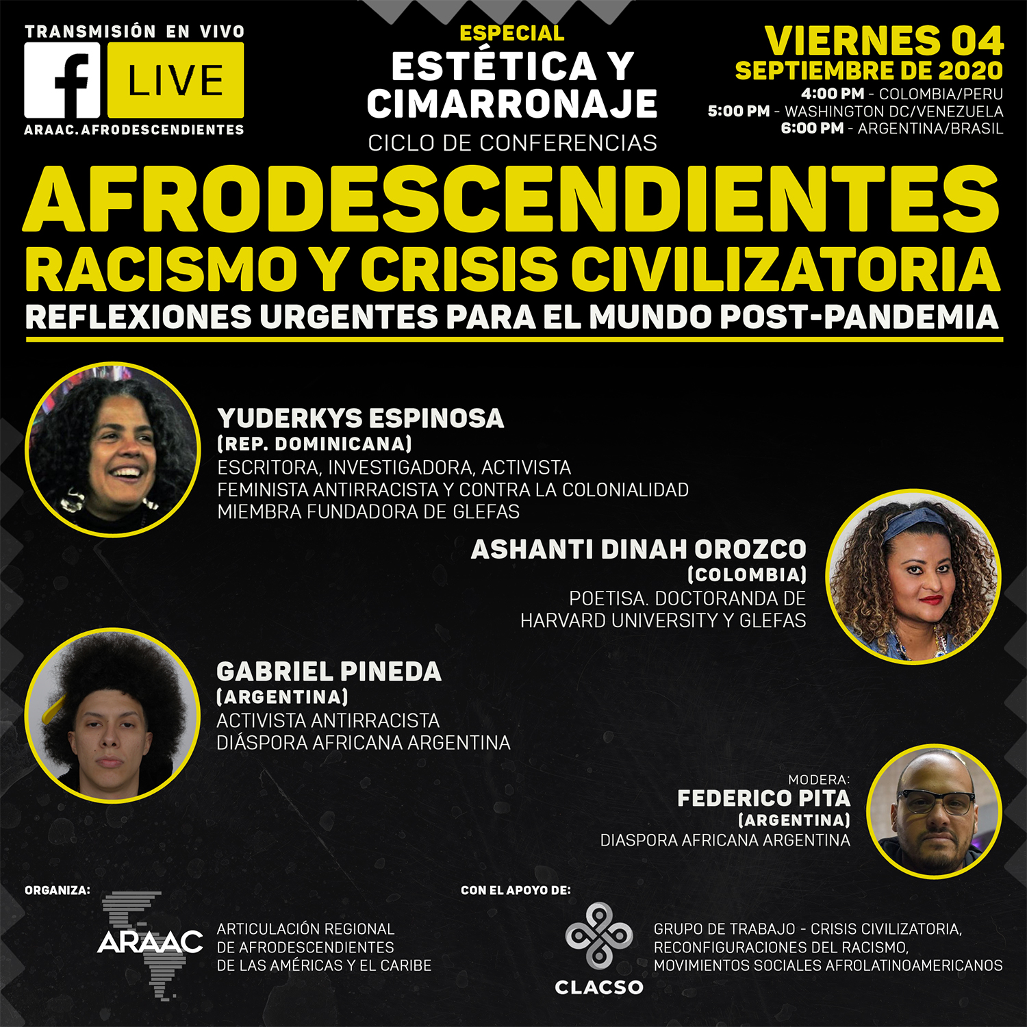 La organización estuvo a cargo de la Articulación de Afrodescendientes de las Américas y el Caribe (ARAAC). La misma cuenta con el apoyo de Grupo de Trabajo CLACSO: Crisis civilizatoria, reconfiguraciones del racismo, movimientos sociales afrolatinoamericanos.